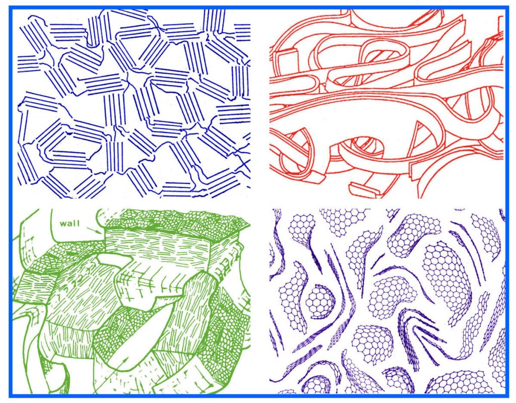 - High-resolution electron microscopy studies of non-graphitizing carbons, P J F Harris and S C Tsang, Phil Mag A, 76, 667 (1997).